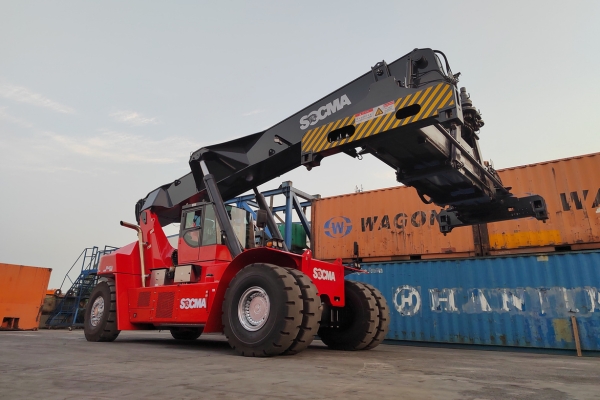 The SOCMA HNRS4531 Reach Stacker is engineered for efficient handling of 20ft and 40ft containers, offering a maximum lift capacity of 45 tons (c1), 31 tons (c2), and 15 tons (c3). Powered by a Cummins QSM11 engine, it combines advanced safety and performance features for robust container management.